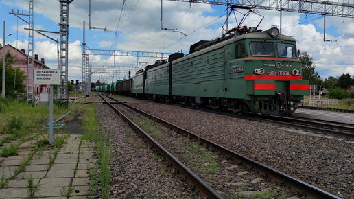 Железная дорога. Электровоз ВЛ11-096/098Б с грузовым поездом.