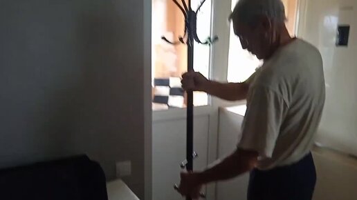 Муж собирает напольную вешалку из СВЕТОФОРА.
