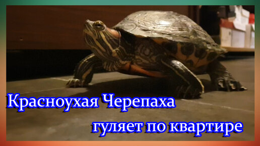 Красноухая Черепаха,гуляет по квартире.