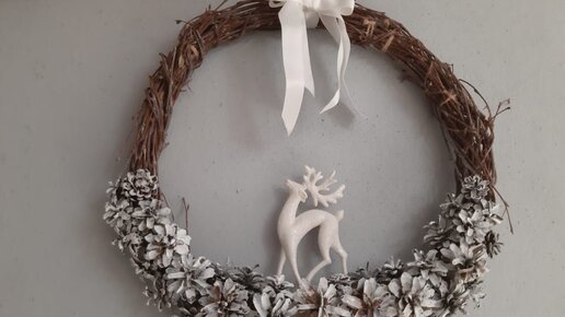 Новогодний/Рождественский венок своими руками из шишек и березовых веток с оленем