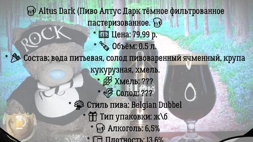 Новое тёмное бельгийское пиво из КБ Altus Dark