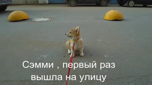 Маленькая корги Сэмми. Первая прогулка. Знакомство с Хати. Катание на тряпке.