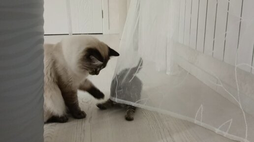 Малышка освоилась и теперь даже "нападает" на Аюшу 🤭🤗🐈