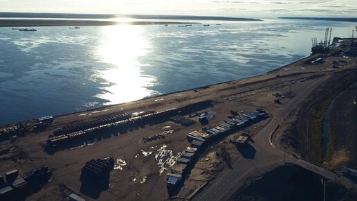 Вид на порт Дудинка — основную транспортную артерию Норильска