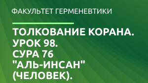 Толкование Корана. Урок 98. Сура 76 "аль-Инсан" (Человек).