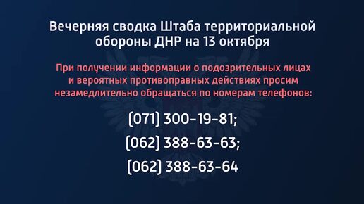 Вечерняя сводка штаба территориальной обороны ДНР на 13 октября 2022 года
