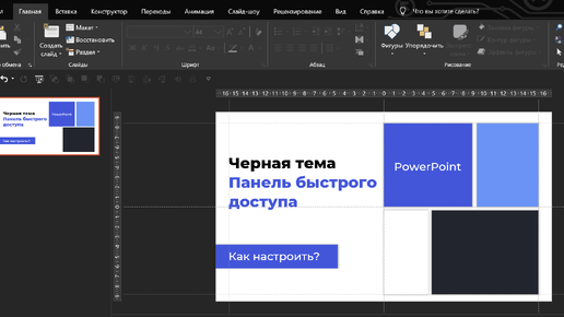 Черная тема и панель быстрого доступа в PowerPoint