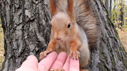 Пришёл Ушастик и всех разогнал. Кормлю Ушастика