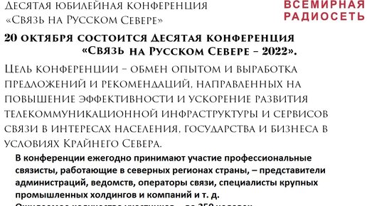 СВЯЗЬ НА РУССКОМ СЕВЕРЕ 2022 ИНТЕРВЬЮ С ПРЕДСТАВИТЕЛЕМ ОРГКОМИТЕТА Х ЮБИЛЕЙНОЙ КОНФЕРЕНЦИИ