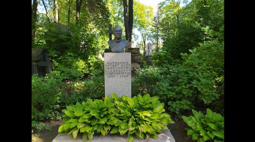 Показываю, как пройти к могиле актёра Константина Скоробогатова на Литераторских мостках Волковского православного кладбища