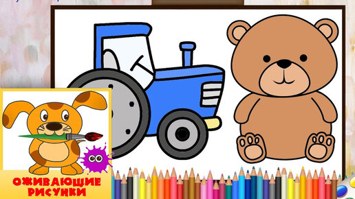 Как нарисовать МИШКУ и ТРАКТОР. Оживающие рисунки для малышей