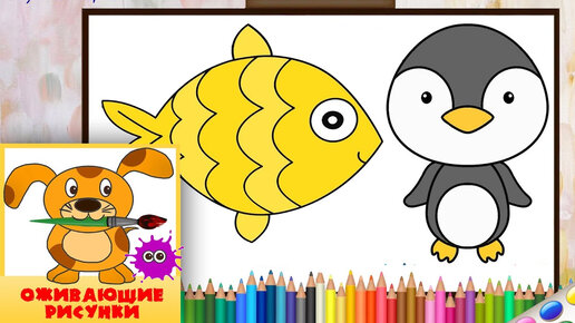 Как нарисовать ПИНГВИНА и РЫБКУ. Оживающие рисунки