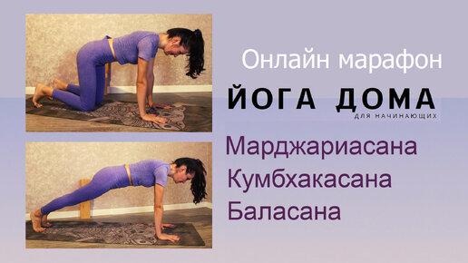 Марафон освоение базовых асан. Видео 4/11_Марджариасана. Кумбхакасана. Баласана