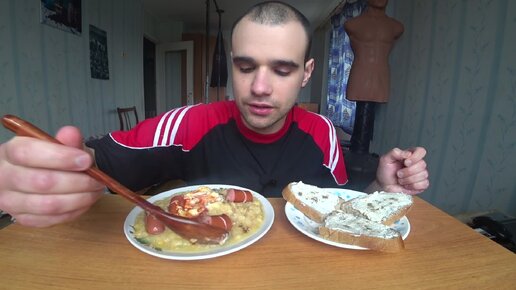 МУКБАНГ/АСМР СОСИСКА ЖАРЕНАЯ/ ГОРОШНИЦА/ СОУС/ БУТЕРБРОДЫ - ХЛЕБ,МАСЛО,ПЕРЕЦ/EATING/ASMR/Mukbang#298