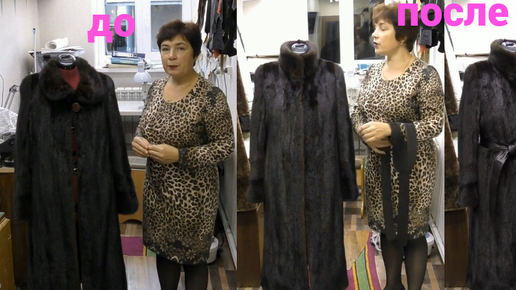 Шуба клёш из норки перешить в прямой фасон . Переделать воротник и дополнить поясом . Видео - уроки по переделке .