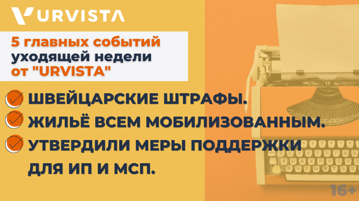 Новости недели: Швейцарские штрафы, Жильё всем мобилизованным, Приняты меры поддержки для ИП и МСП