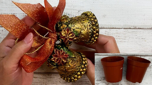 Новогодние колокольчики из пластиковых горшочков. Мусор в дело .