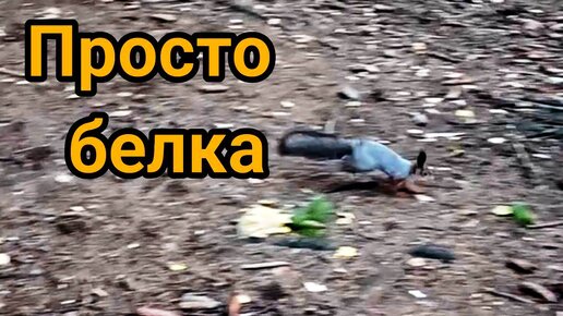 На третьей минуте белка смешно выглядывает из-за дерева