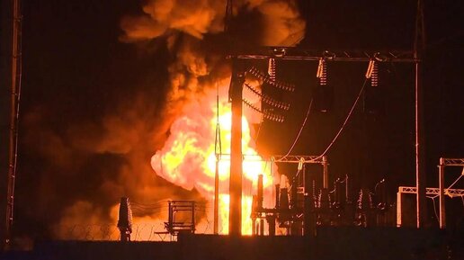 Момент прилета снаряда на территорию ТЭЦ в Белгороде
