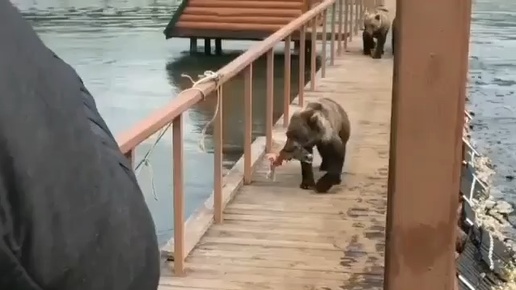 Медведи не обязательно едят пойманную рыбу. Бывает такое, что ее сразу отпускают. Им просто нравится рыбачить! Чаще всего едят голову и икру. Остальное бросают, либо закапывают#медведь #животные