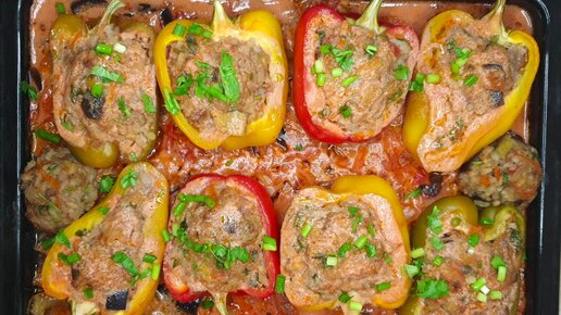 Фаршированный Болгарский Перец в Сметанно-Томатном Соусе ! Рецепт сочного, вкусного перца в духовке!