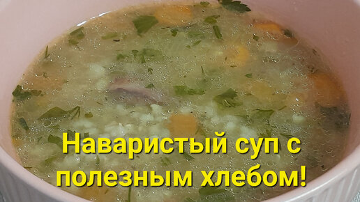 Наваристый суп из куриных сердечек и бурого риса с полезным хлебом! Вкусно!