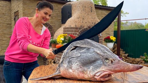 Смачна уха з величезної осетрової Голови! Корисна рибна страва.