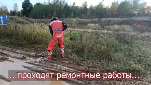 Тренировка с лопатой на трассе для мотокросса