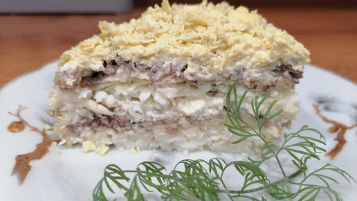 Мимоза без картофеля /слоёный рыбный салат