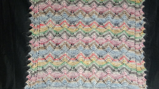Палантин пуховый оренбургский "Нежная Радуга", натуральный пух. Ручная работа.