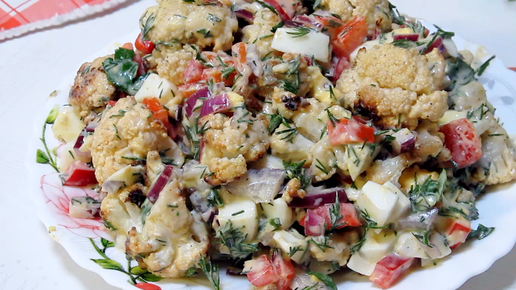 Салат с цветной капустой.Он сочный, а заправка делает его очень вкусным