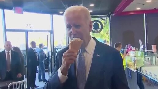Байден с мороженкой в руках уверяет, что инфляция не страшна, потому что экономика США чертовски сильна.