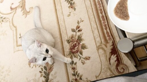 Кошка Кристалл ест полезную кашку.