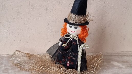 Ведьмочка в колпаке из кусочков ткани и картона. Подробный мастер класс