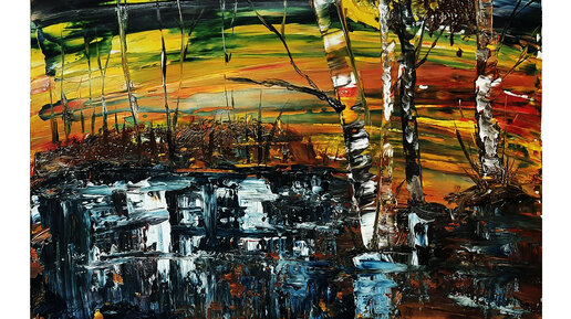 Нарисуем пасмурную осень. Картина из остатков краски. Пейзаж гуашью.