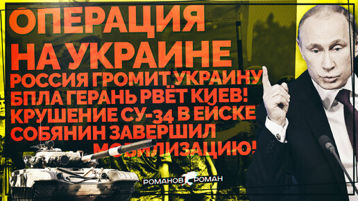 Россия громит Украину: БПЛА Герань рвёт Киев! Крушение Су-34 в Ейске! Собянин завершил мобилизацию!