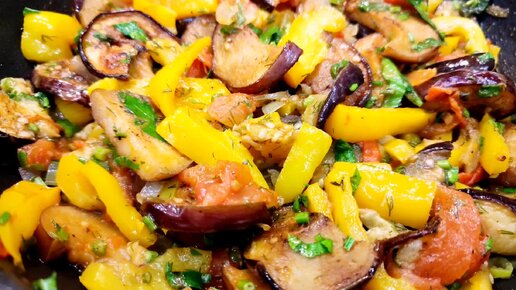 Баклажаны с перцем и томатом на сковороде🍆🍆🍆