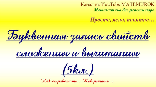 Буквенная запись свойств сложения и вычитания (5 класс).