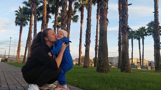 Просто мы с дочей гуляем среди красивых пальм в Сочи