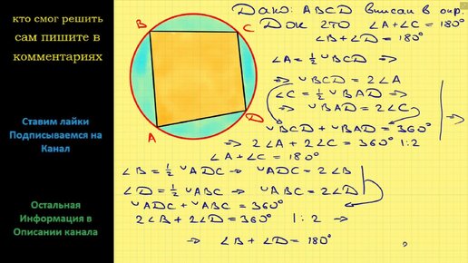Геометрия Если четырехугольник является вписанным в окружность, то сумма его противолежащих углов равна 180