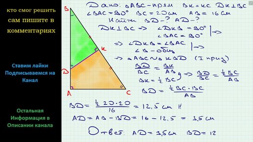 Геометрия Гипотенуза прямоугольного треугольника равна 20 см, а больший катет – 16 см Найдите отрезки, на которые серединный перпендикуляр