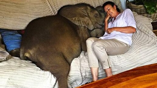 Женщина спасла слоненка, выброшенного на берег наводнением, теперь он повсюду следует за ней...