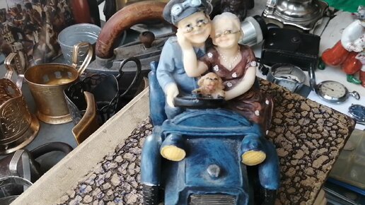 Фигурка старичков, советские подстаканники, часы