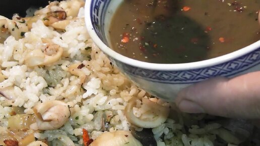 Сладкий пикантный кальмар с рисом.