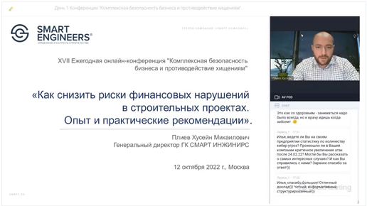 Ежегодная онлайн-конференция «Комплексная безопасность бизнеса и противодействие хищениям». Выступление Хусейна Плиева, ГК SMART ENGINEERS
