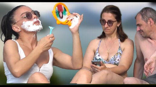 ПРАНК - ДЕВУШКА ХАРКАЕТСЯ И БРЕЕТСЯ У ВСЕХ НА ВИДУ