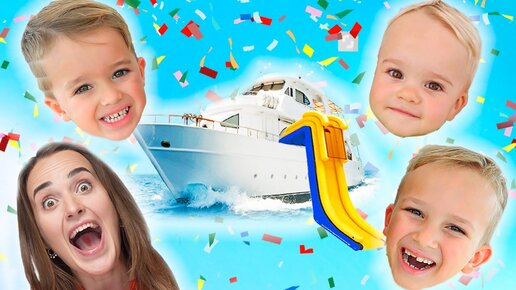 День Рождения Криса! Детский праздник на яхте с горкой | Видео для детей