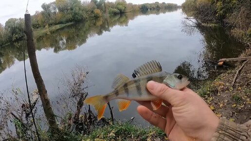 Окунишко попался. Ну такого уже приятно ловить на поплавок.