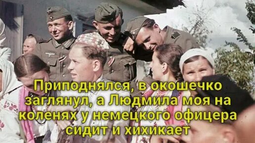 Я приподнялся, в окошечко заглянул, а Людмила моя с немецким офицером сидит и хихикает