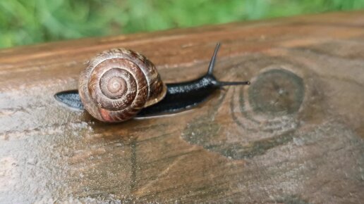 Ракушка улитки прекрасно гармонирует с древесным рисунком! Природа все может!